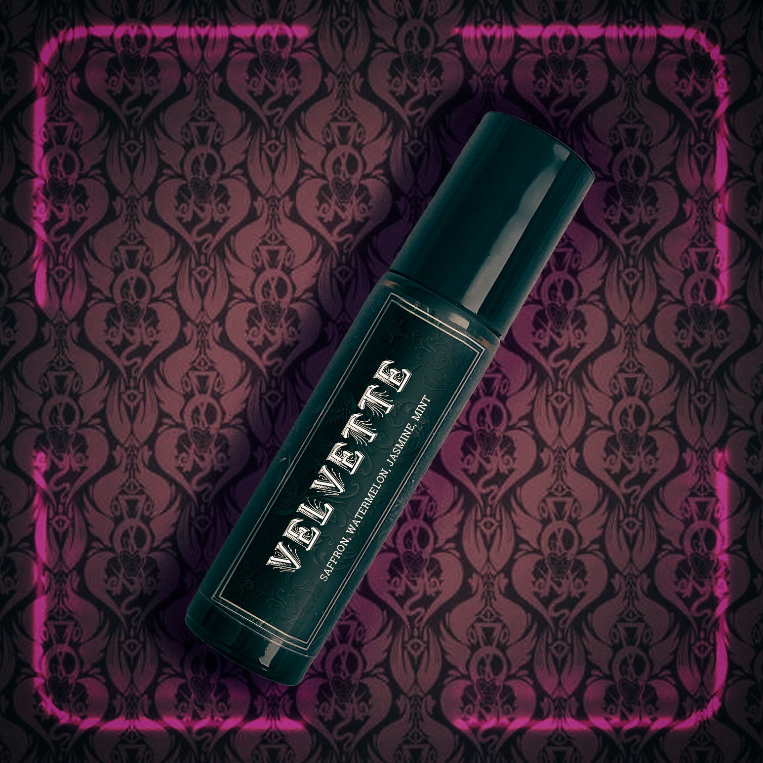 Indulge in the essence of Velvete, the enchanting vixen from Hazbin Hotel and the undisputed queen of social media, with our signature perfume. Like Velvete herself, this fragrance is a symphony of complexity. Saffron, the fiery note, embodies her passionate spirit and fierce determination, igniting your senses. Watermelon adds a playful sweetness, reflecting Velvete's magnetic charm and vibrant personality. Jasmine, delicate yet intoxicating, mirrors her allure. And mint, refreshing and sharp, captures Velvete's cool confidence and sharp wit.